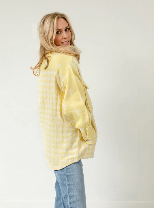 Hannah is the perfect throw-over jacket to spice up any look. A classic button-down with dogtooth handloom pattern weaving that comes in a gorgeous light blue colour combination. Hannah features long-sleeves, clean button front, pointed collar and roomy front pockets for a little extra.