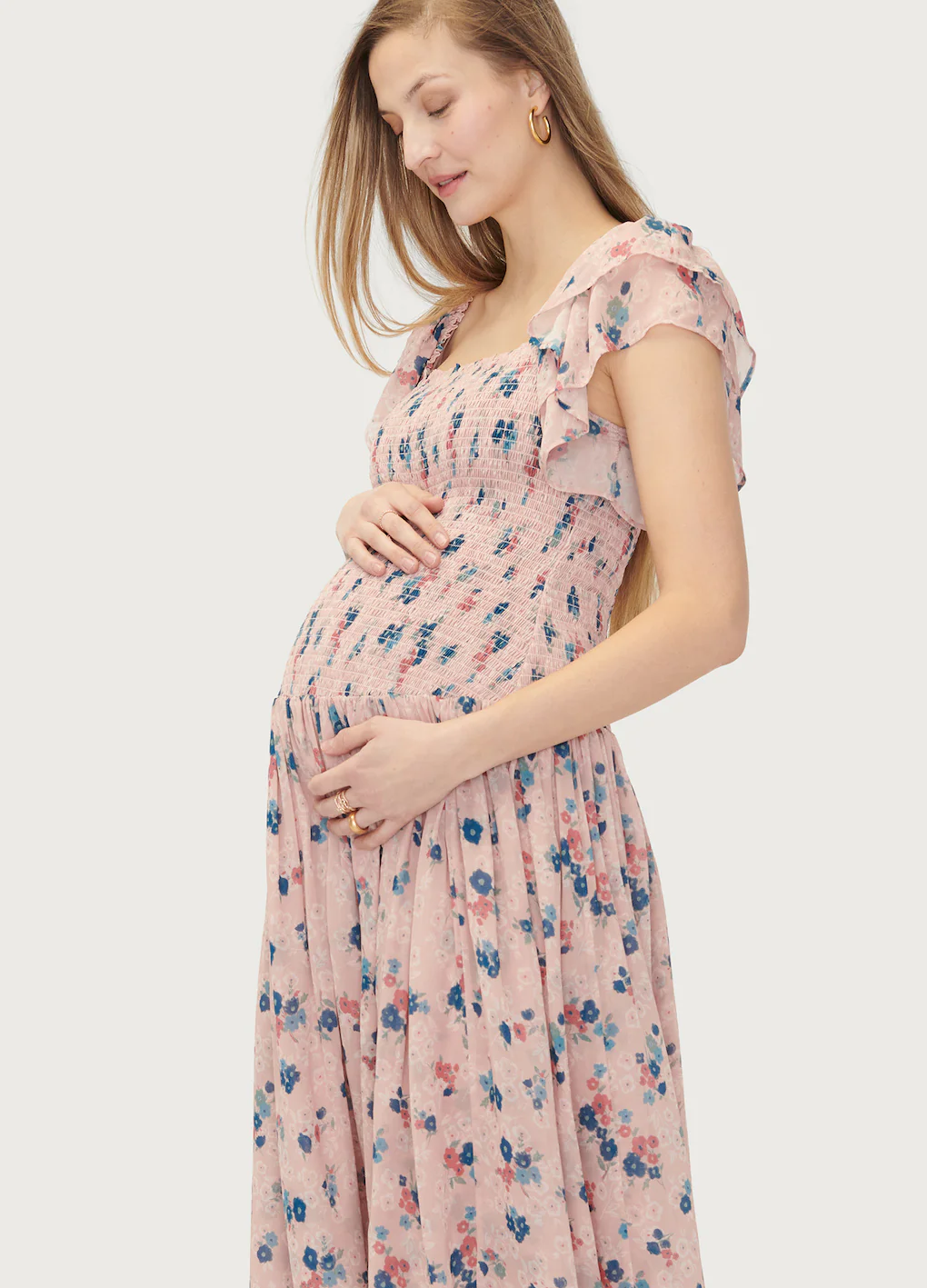 Made for Maternity. Where to start with this one? This Hatch maternity dress with a fully smocked bodice offers extra support and a ton of standout style plus elastic smocking at the neckline means it can be worn on or off the shoulder. Did we mention tiered flutter sleeves?